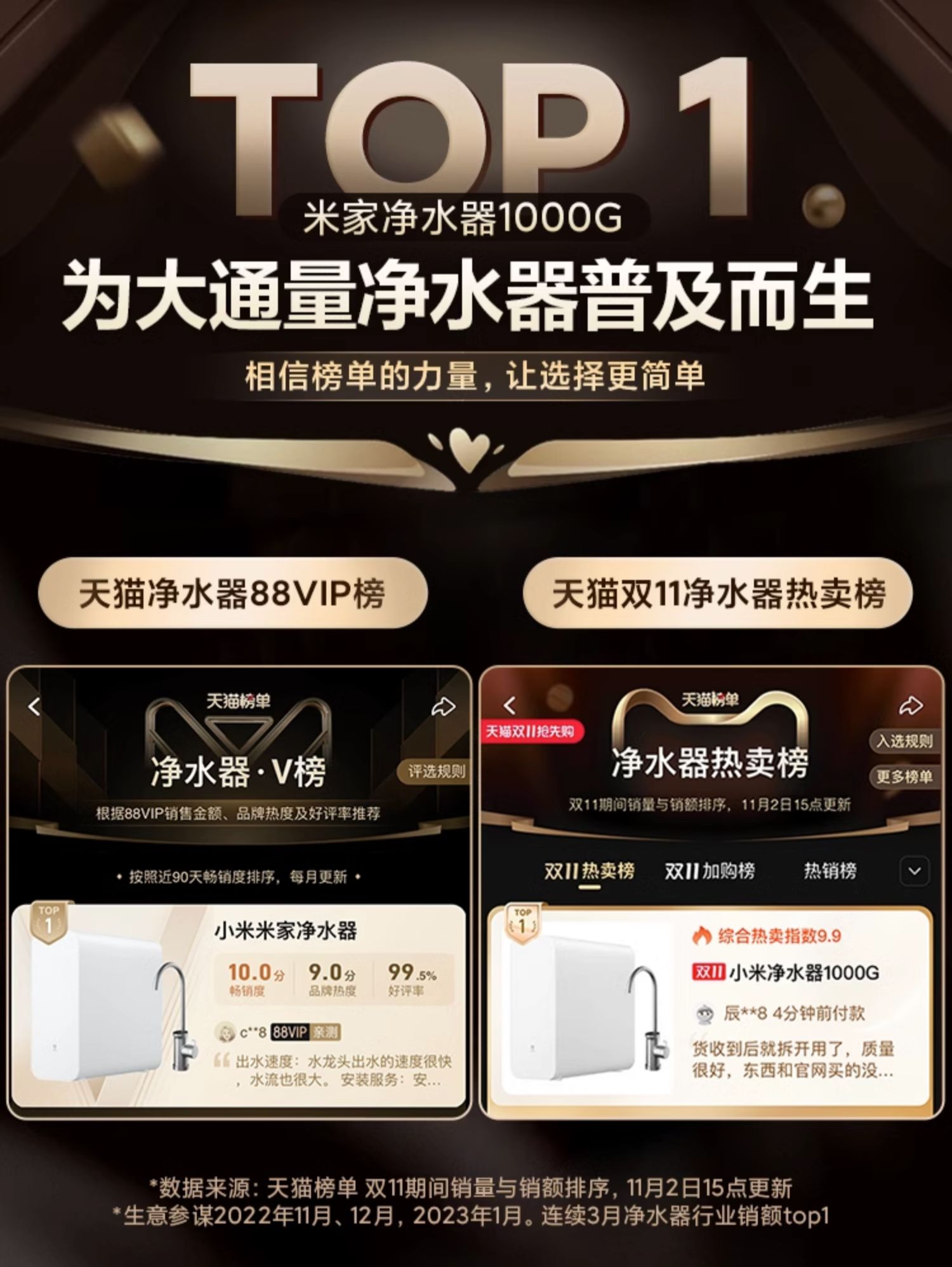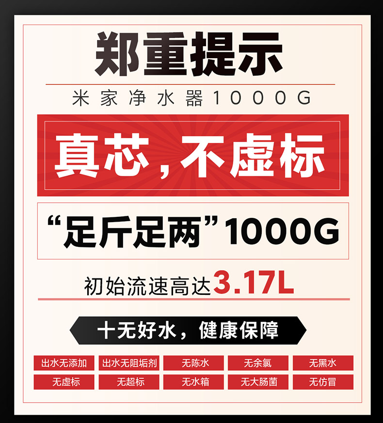 商品介绍:小米米家过滤净水器1000GPro防渗透