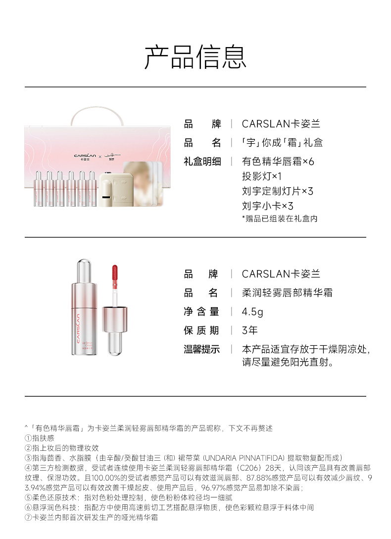 商品名称:卡姿兰唇部精华霜口红唇釉镜面水光秋冬唇蜜保湿裸色哑光显白唇彩