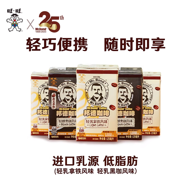 商品名称:旺旺临期邦德咖啡轻乳拿铁即饮咖啡125ml*8盒早餐办公饮品T
