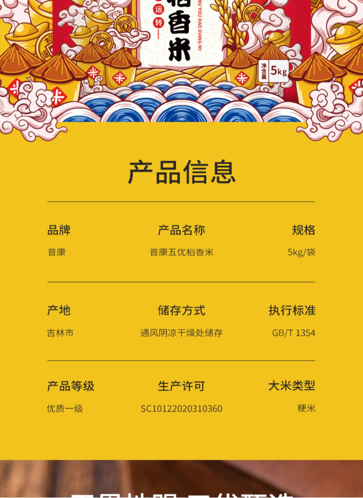 商品介绍:普康五优稻香米5kg稻花香2号真空袋装