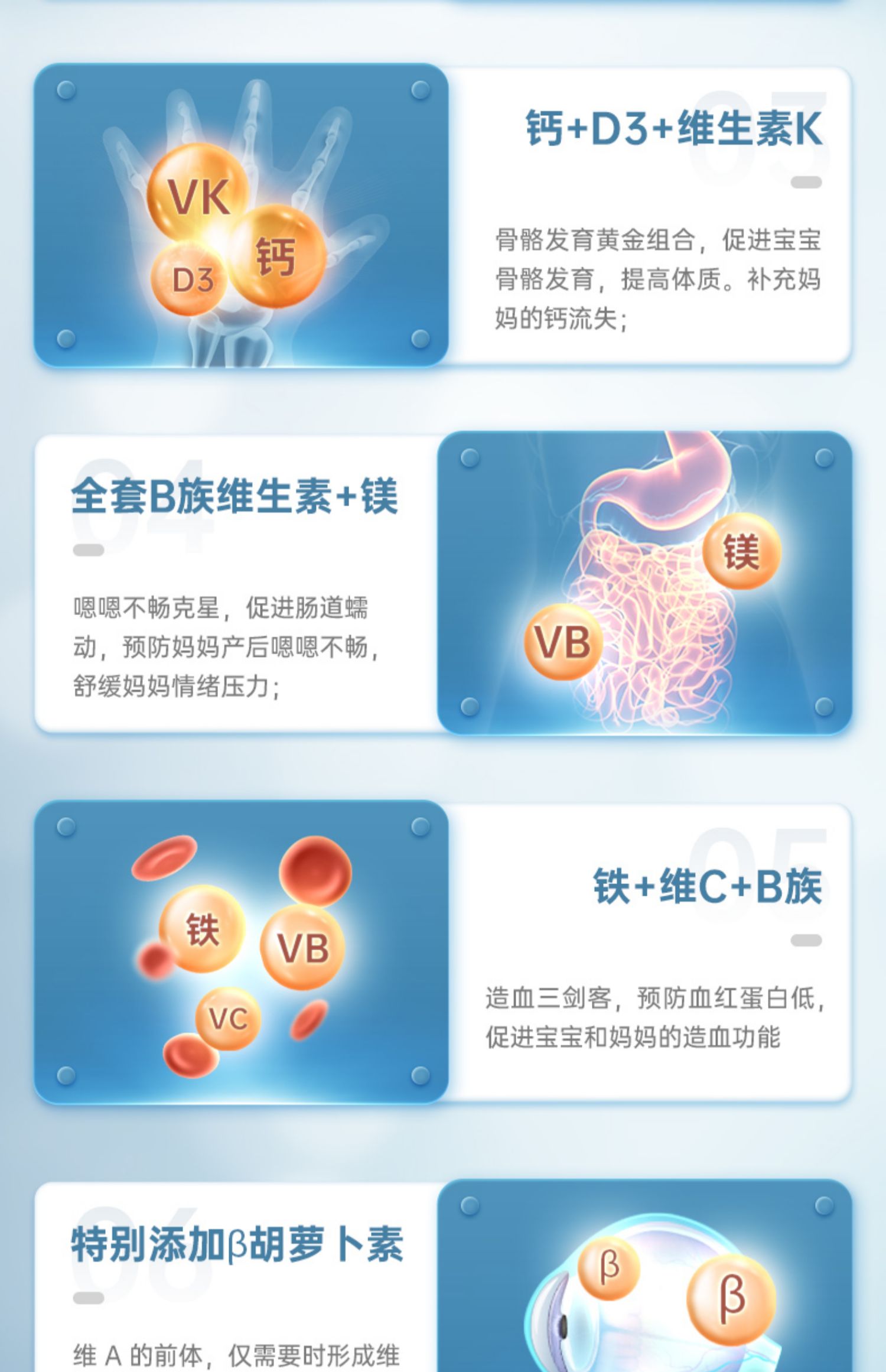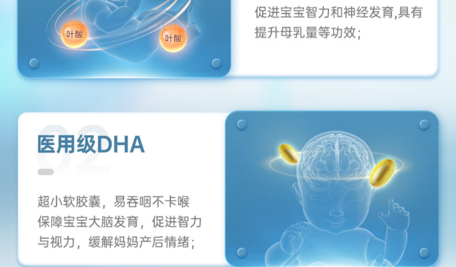 商品简介:热销上万件,一款英喻户晓的好产品,哺乳期妈妈该补啦,必备维生素DHA钙铁锌,确保宝宝营养,妈妈健康,奶水充足营养好,促进婴儿眼脑发育,维护骨骼健康,配方科学安全。