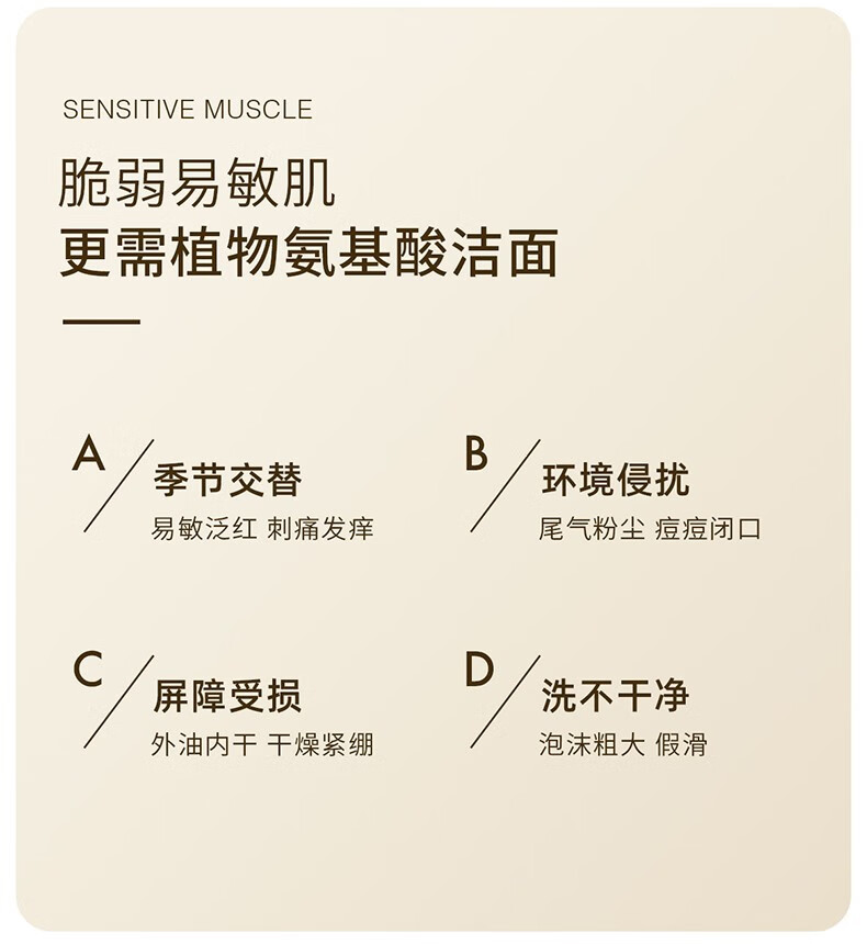 商品简介:【叠加礼金1.7到手33,88vip到手31,8】敏肌专研,植物氨基酸配方,双重植物氨基酸,温和不紧绷,绵密泡沫,清洁力强,易冲洗,不假滑/拔干,肌肤更清爽~~