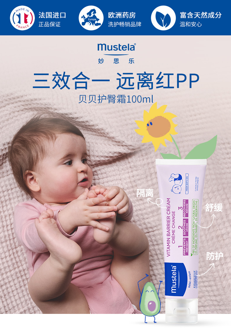 商品名称:法国mustela妙思乐护臀隔离霜婴幼儿宝宝儿童滋润保湿温和不刺激