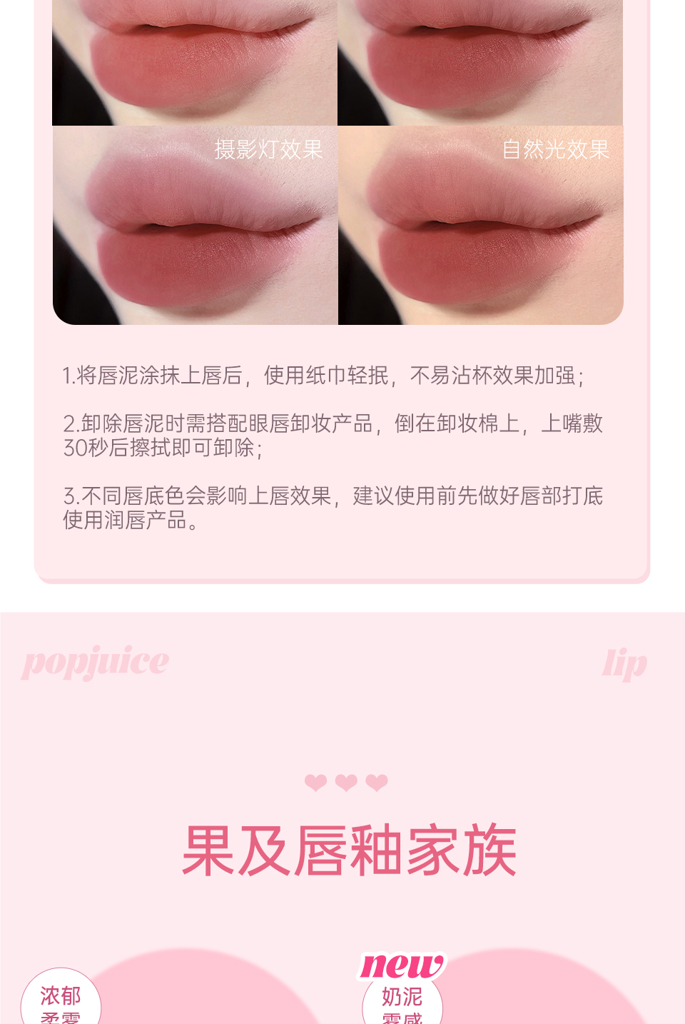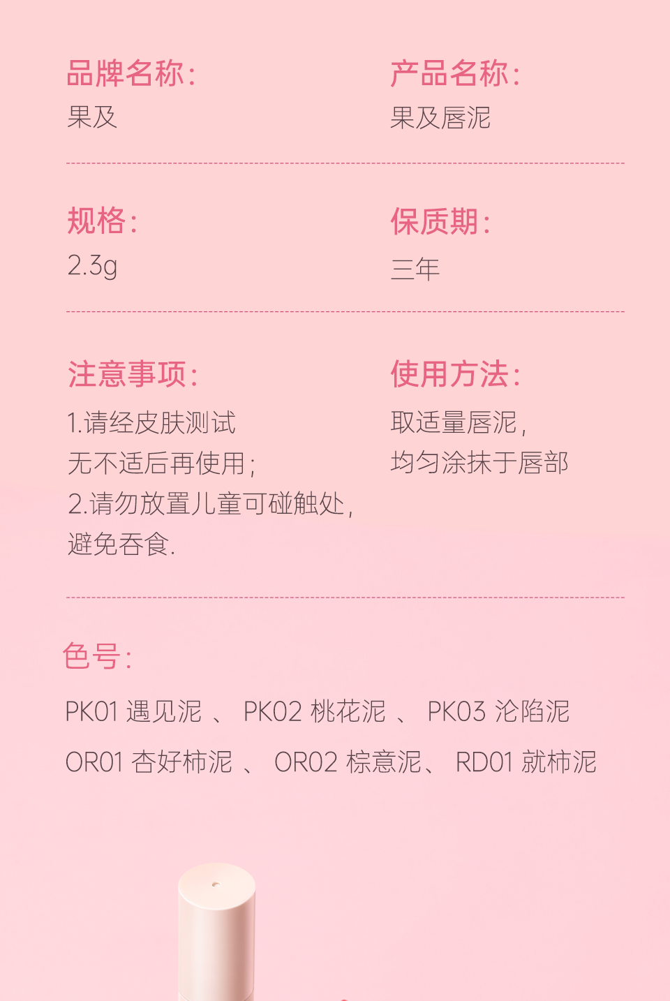 商品名称:【新色上市】果及唇泥雾面哑光口红唇釉不沾杯平价学生女小众品牌