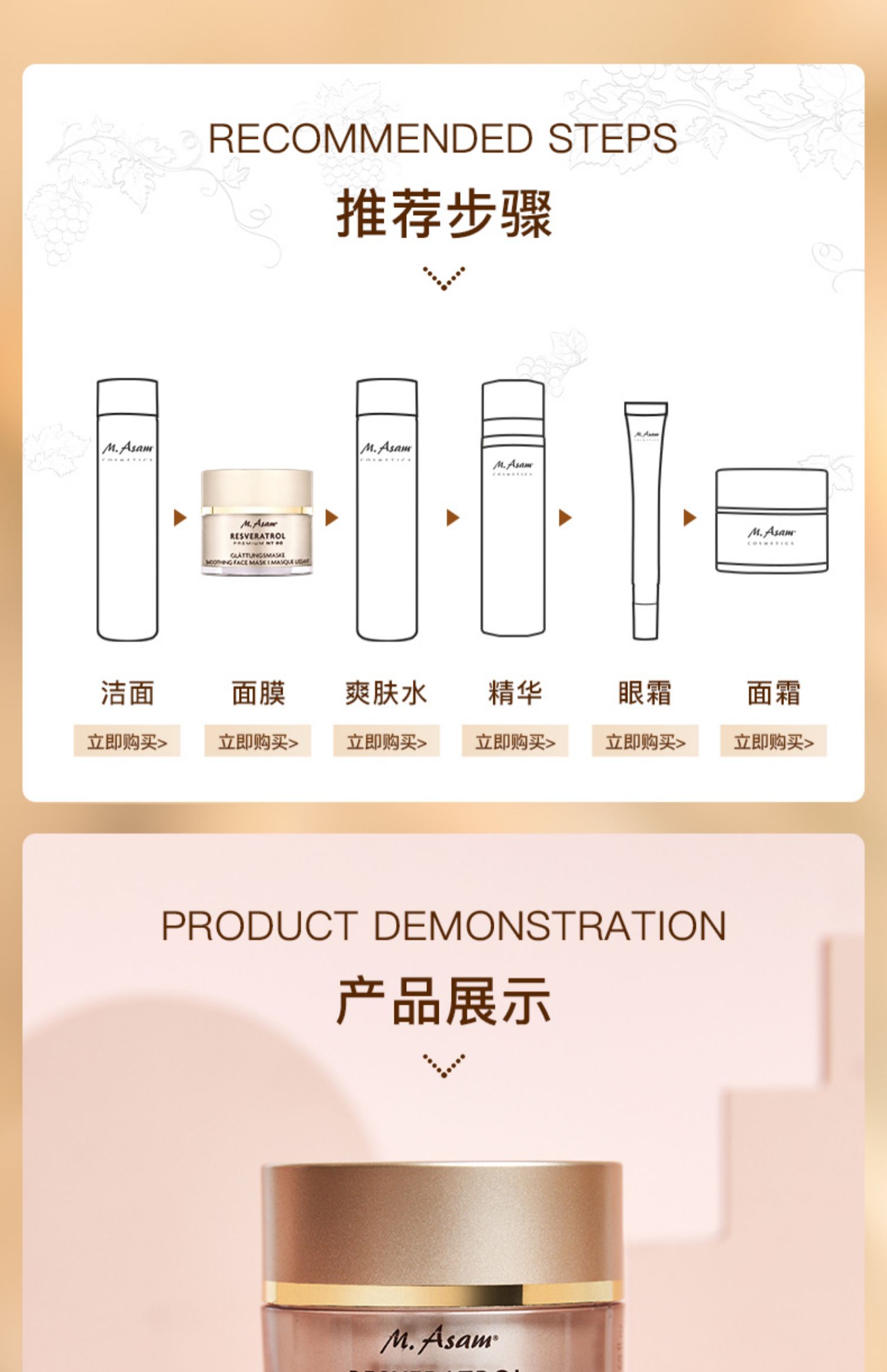 商品名称:德国M.Asam安诗慕白藜芦醇涂抹面膜50ml熬夜急救抗氧紧致小金罐