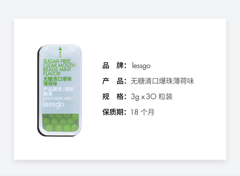 商品名称:lessgo口气清新爆糖珠口腔爆珠糖接吻糖口香爆丸薄荷糖果接吻神器