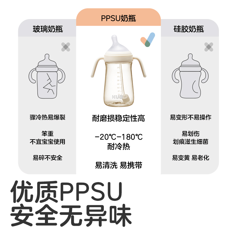 商品介绍:KUB可优比分阶奶瓶ppsu宽口径小宝宝防胀气