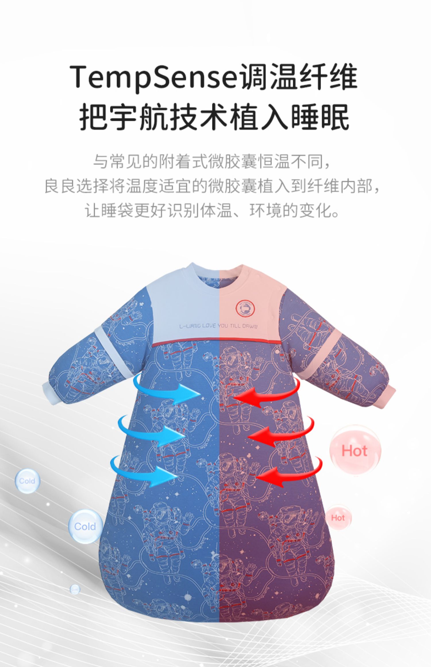 商品简介:良良智能恒温一体睡袋,体感调温舱,双向调温为爱启航,骄傲升级五大核心技术,调温纤维,把宇航技术植入睡眠,A类品质,让宝宝睡眠更舒服,自动平衡内外温差,妈妈放心选购