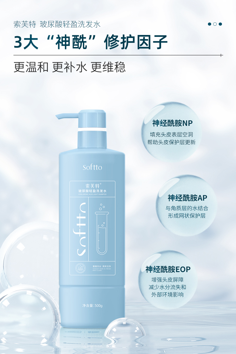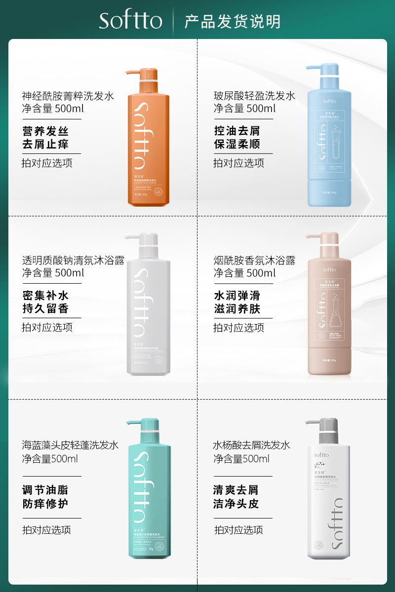 商品简介:【叠加300-30到手折9.86亓一瓶】索芙特沐浴露温和洁净洗发水500g*4,专为细软偏塌、干燥脆弱发质研发的,解决干燥、水油失衡、脆弱易断问题!这款洗护界的“神酰水”,你值得拥有!