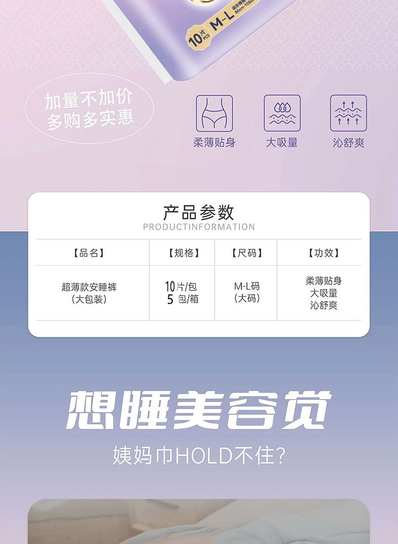 商品名称:【粉丝专享】安心裤经期姨妈防漏裤卫生巾夜用拉拉裤安睡裤10条
