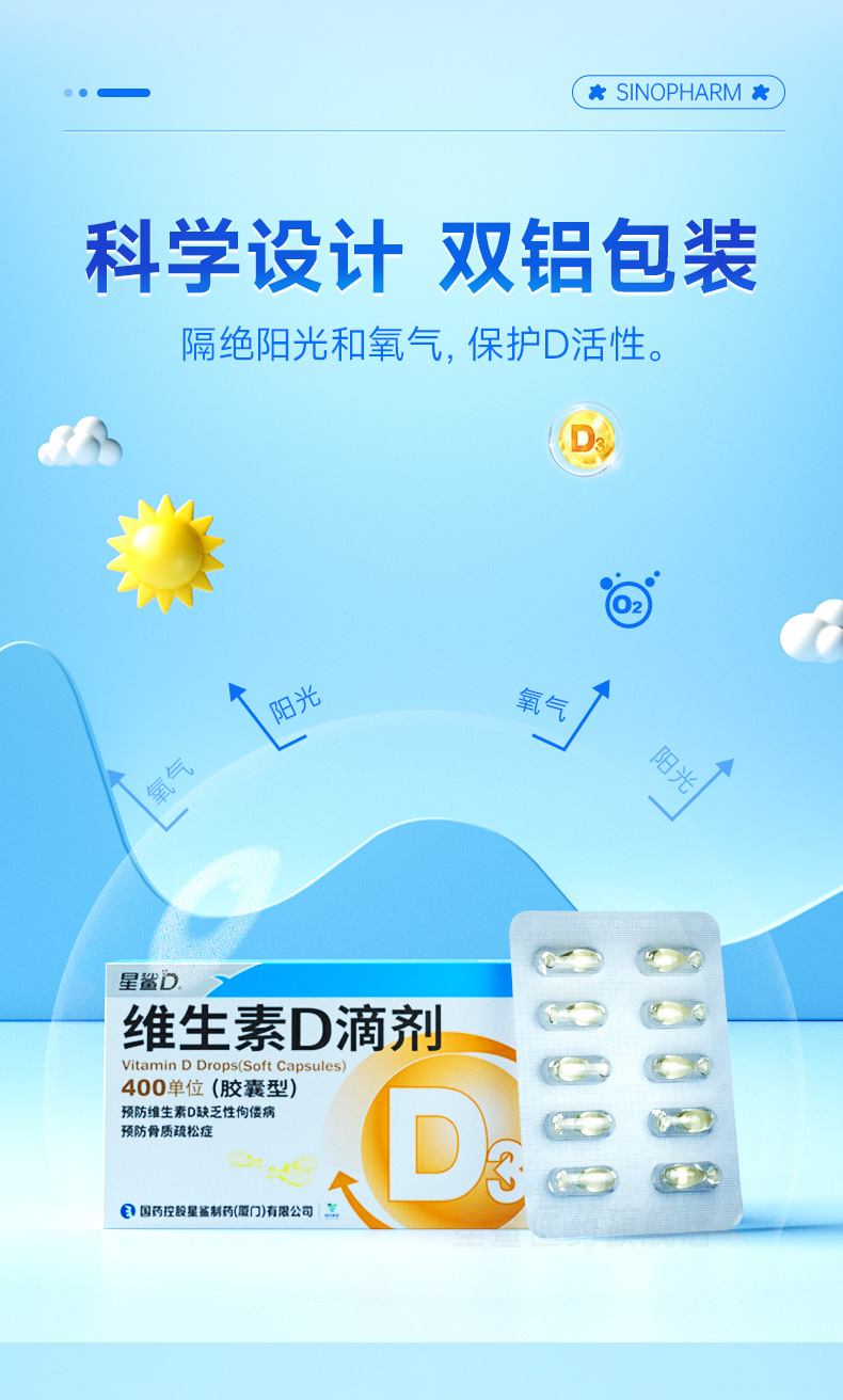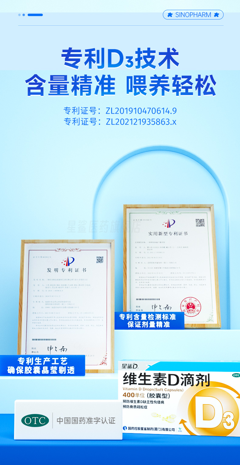商品名称:星鲨维生素D滴剂胶囊维D滴剂促钙吸收儿童d3成人补D婴儿维d3
