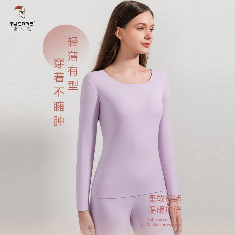 商品介绍:啄木鸟情侣双面磨毛无痕保暖内衣套装