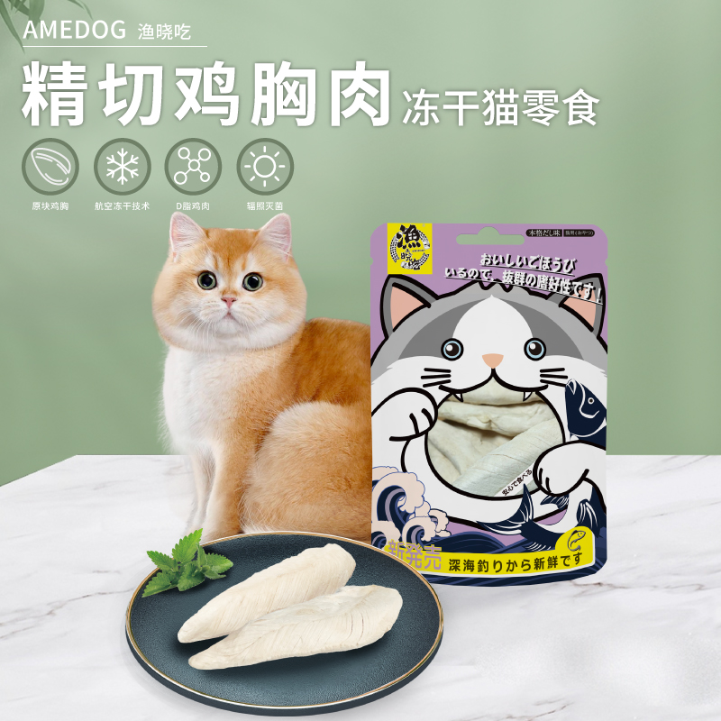 商品介绍:猫零食鸡胸肉原切冻干3包*40g