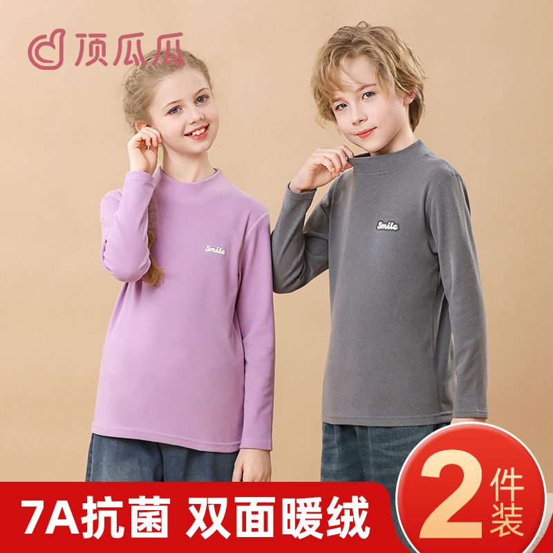 商品简介:劵后到手价39.9/2件,顶瓜瓜儿童打底衫女童男童中领内搭德绒保暖