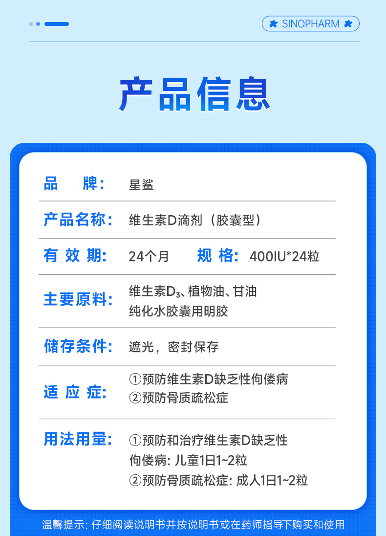 商品介绍:星鲨维生素d3维生素d成人儿童滴剂孕妇vd
