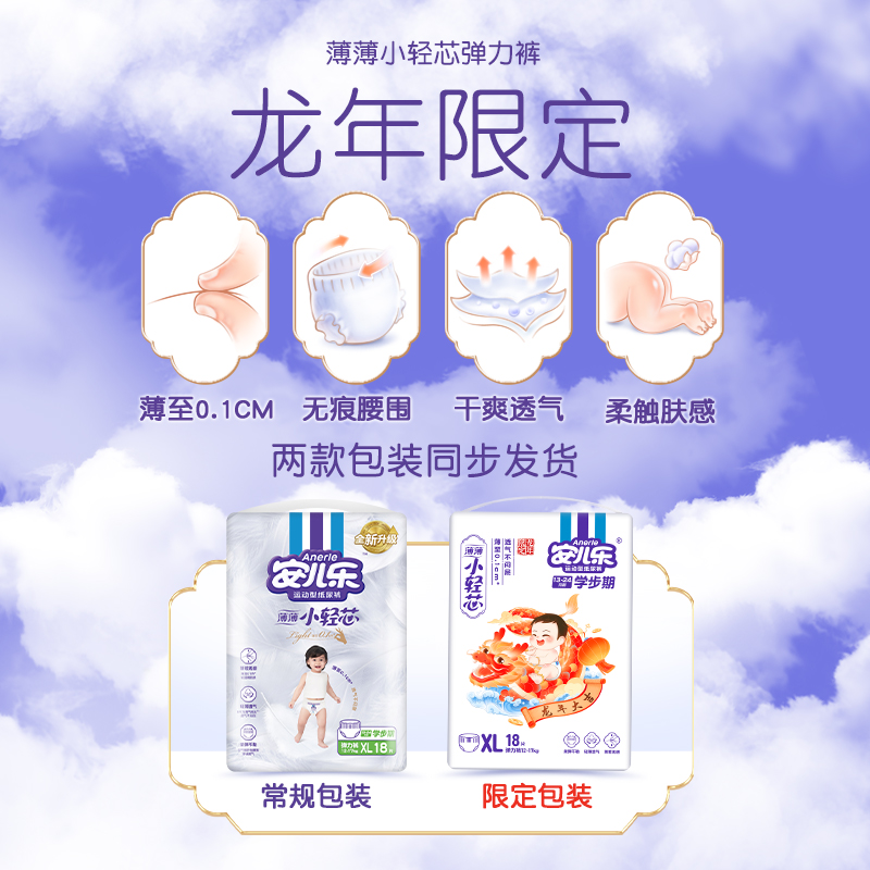 商品名称:安儿乐小轻芯龙年限定款拉拉裤L-3XL码婴儿超薄透气尿不湿mini装