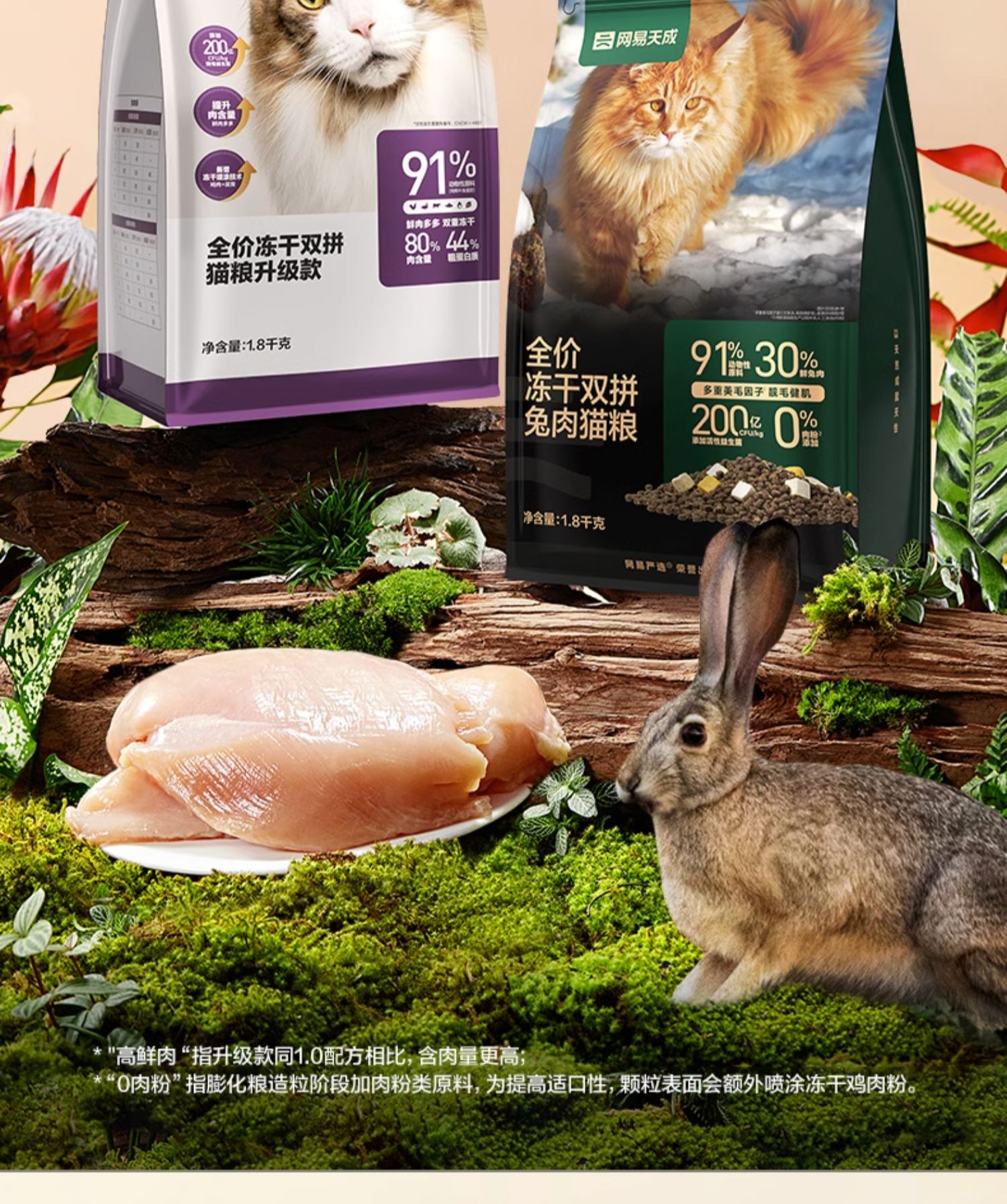 商品名称:网易严选猫粮 全价冻干双拼猫粮兔肉幼猫成猫营养鲜肉天成旗舰店