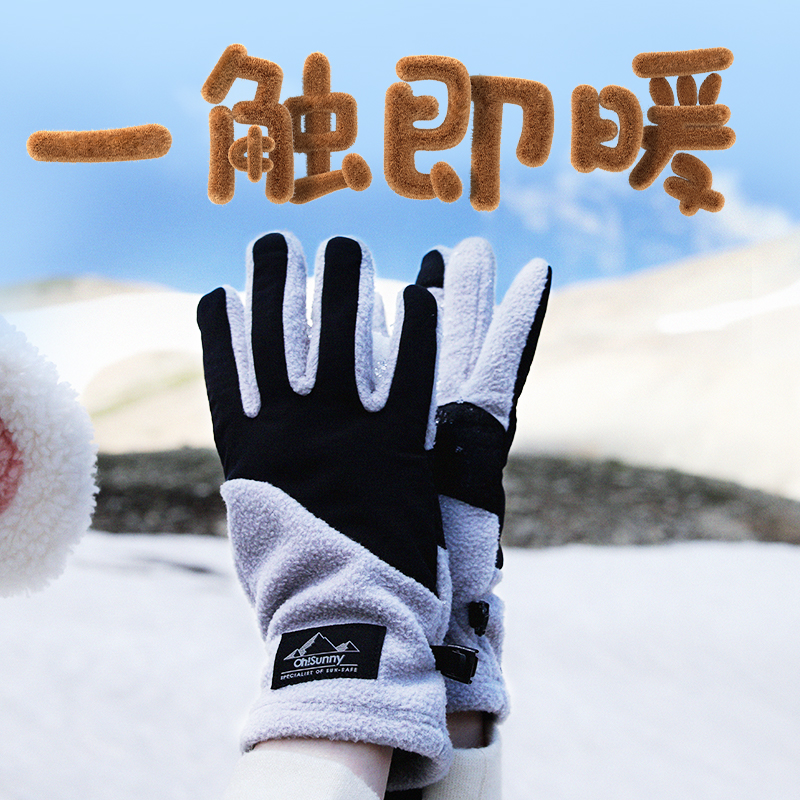 商品名称:ohsunny保暖毛绒手套秋冬季加厚女款加绒骑行防风防寒触屏手套