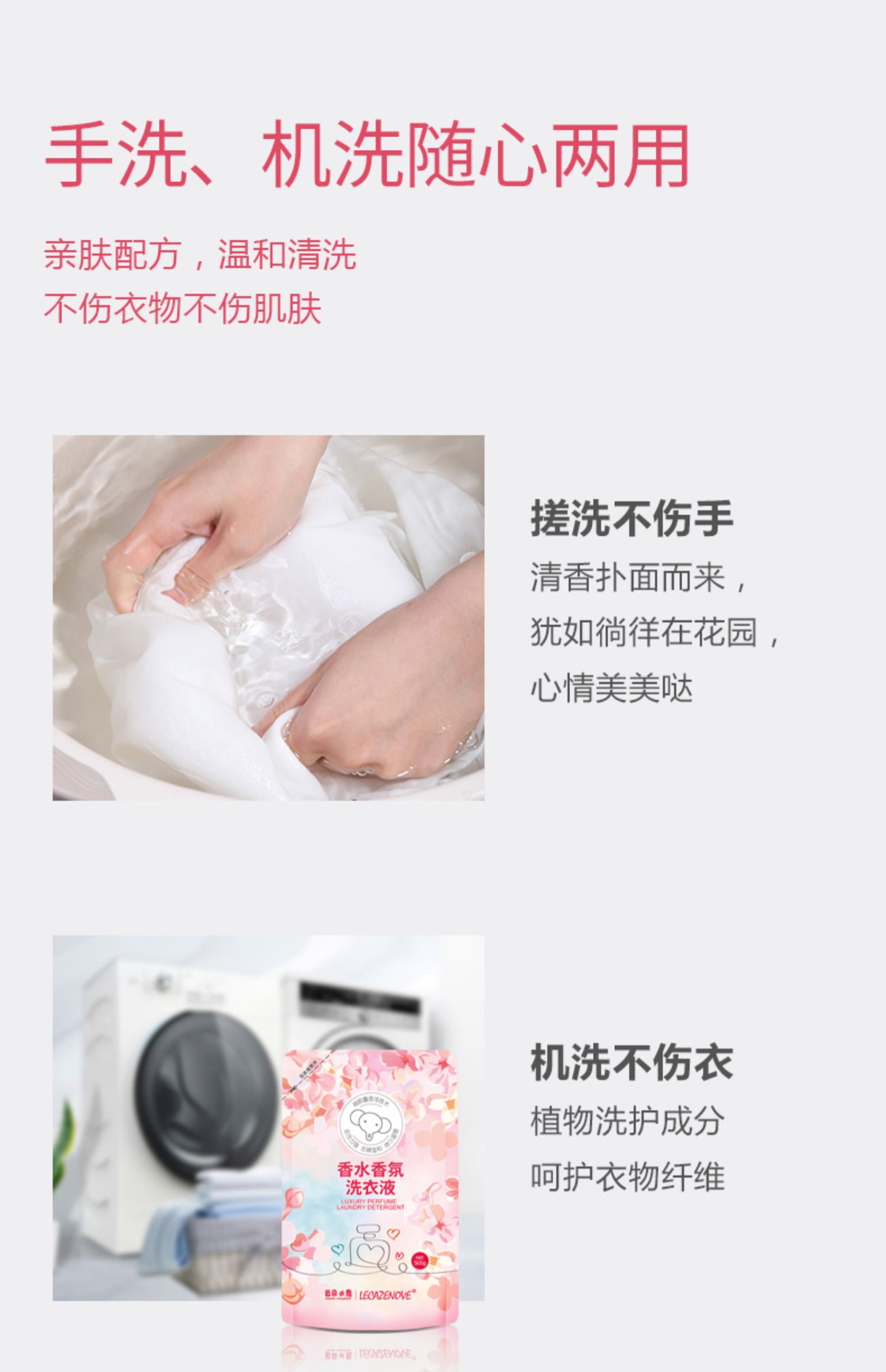 商品介绍:【稳定无卡】香水洗衣液450g*2袋