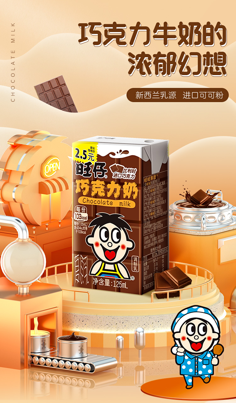 商品介绍:旺旺旺仔牛奶巧克力奶125ml*20盒
