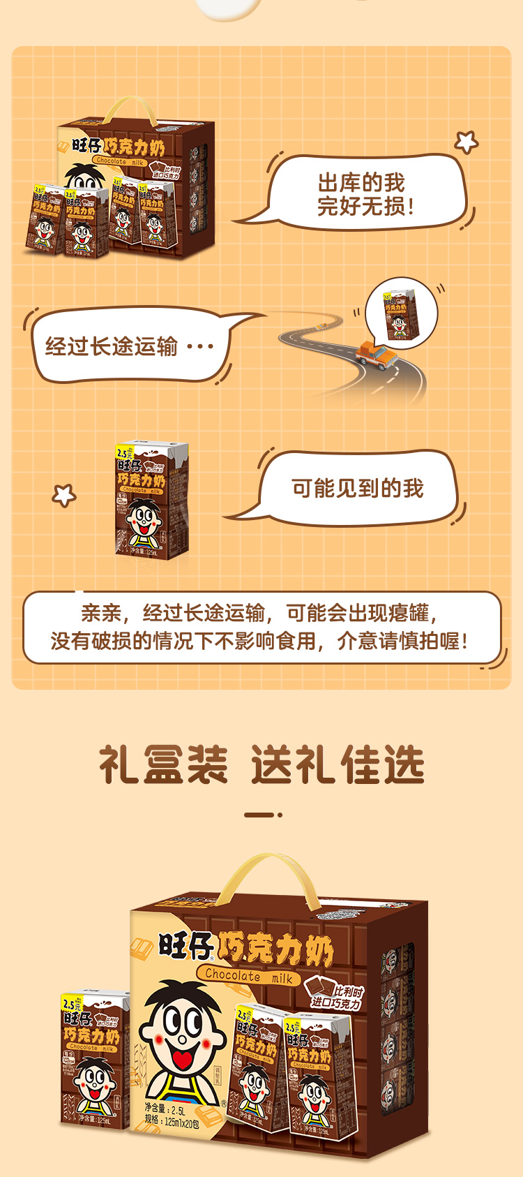 商品名称:旺旺旺仔牛奶巧克力奶125ml*20盒巧克力味儿童牛奶饮品整箱礼盒装