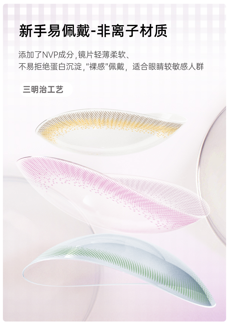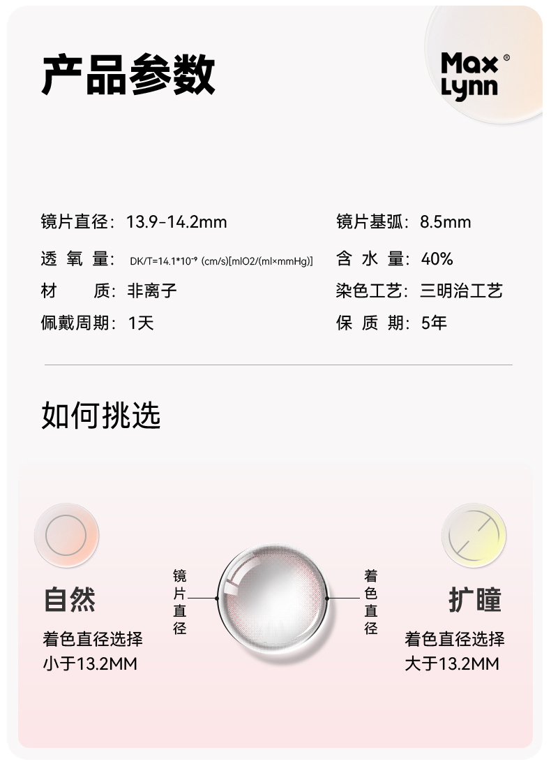 商品简介:10小时不干涩,高透氧。高光气质系列,大小直径任选。