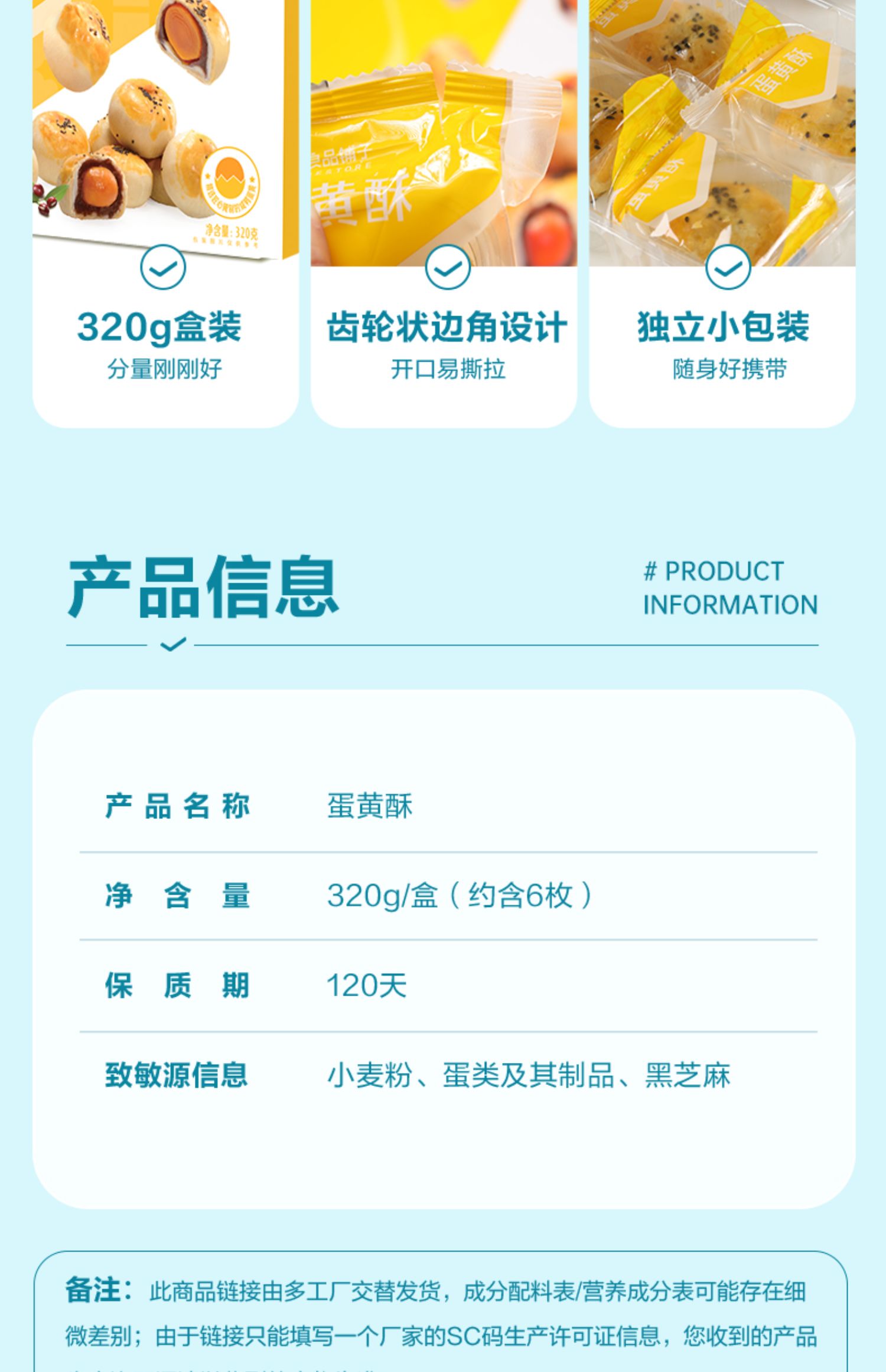 商品介绍:良品铺子【优质蛋黄6枚装】蛋黄酥320g*2