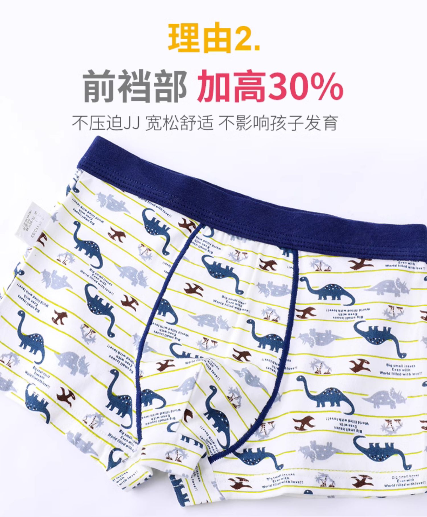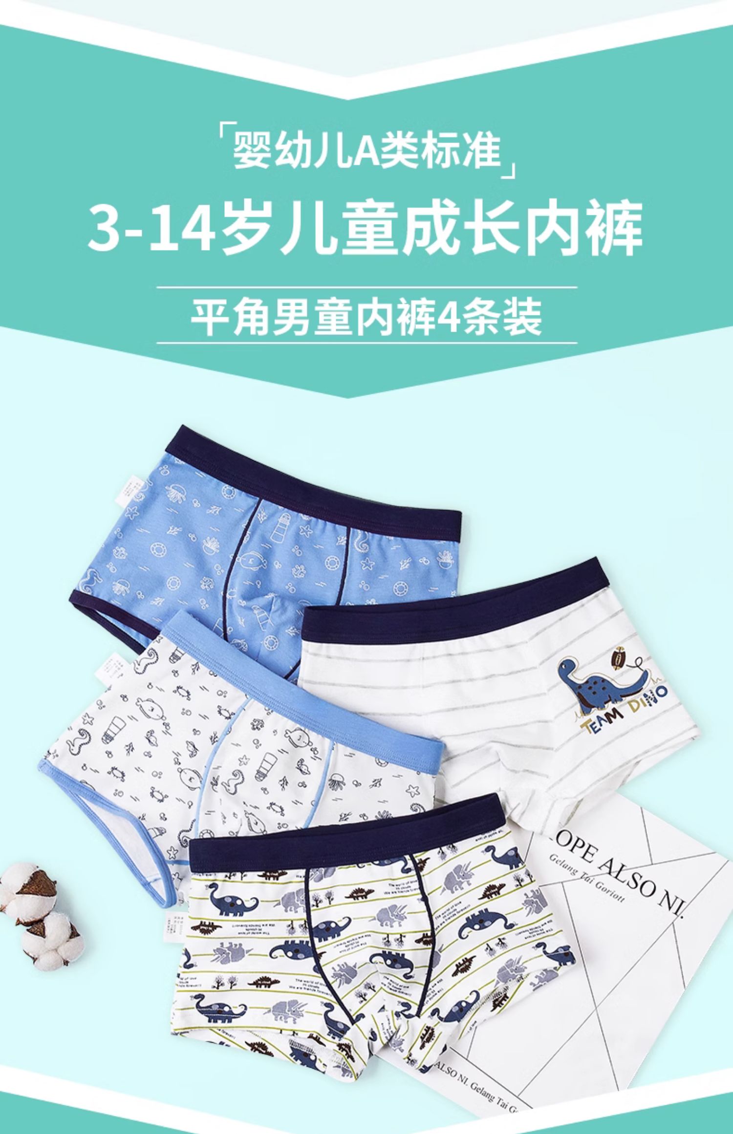 商品介绍:【4条装】优乐宜男童纯棉四角内裤