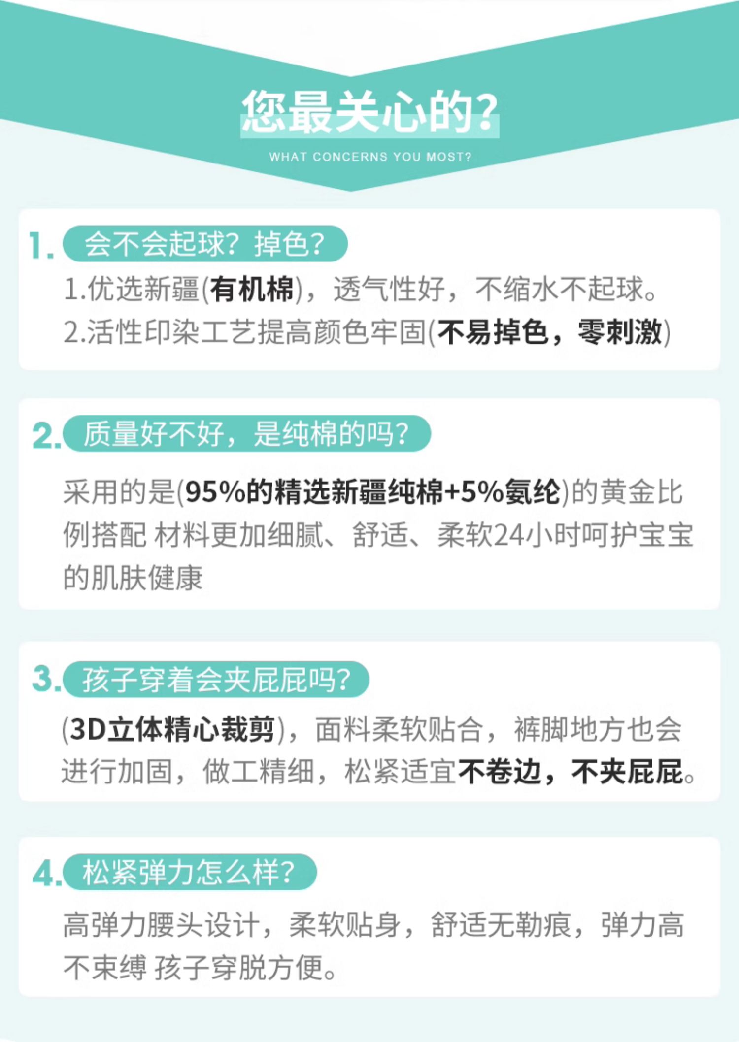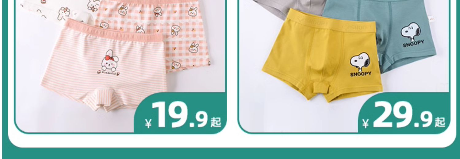 商品简介:热销50万条,超高评分!A类棉品质,柔软舒适,平角设计,不卷边不夹小屁屁!高弹力腰头设计,宝宝穿脱方便!让妈妈放心的小内内!【赠运费险】