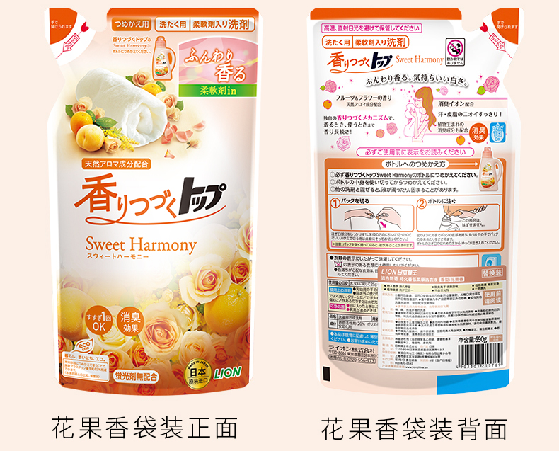 商品介绍:狮王持久香氛洗衣液花果香套装2.4KG