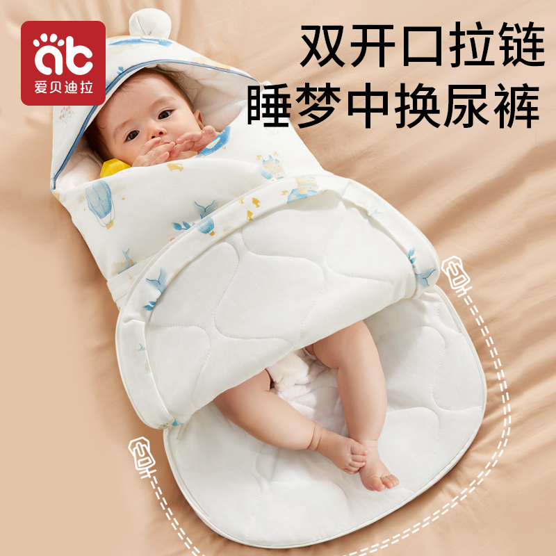 商品介绍:爱贝迪拉初生婴儿纯棉恒温一体式包被