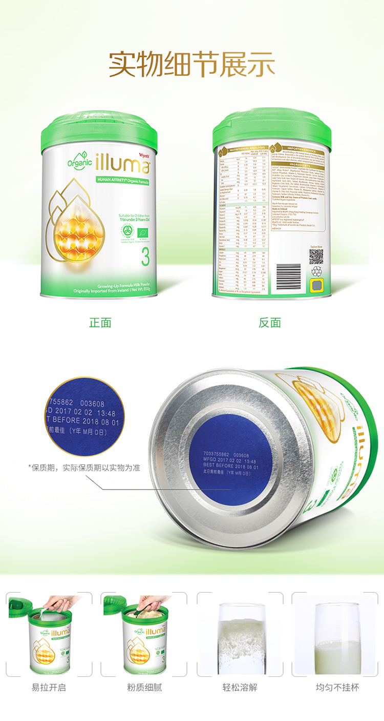 商品名称:【自营】惠氏Wyeth启赋有机3段婴幼儿奶粉(1-3岁)*6自营850g