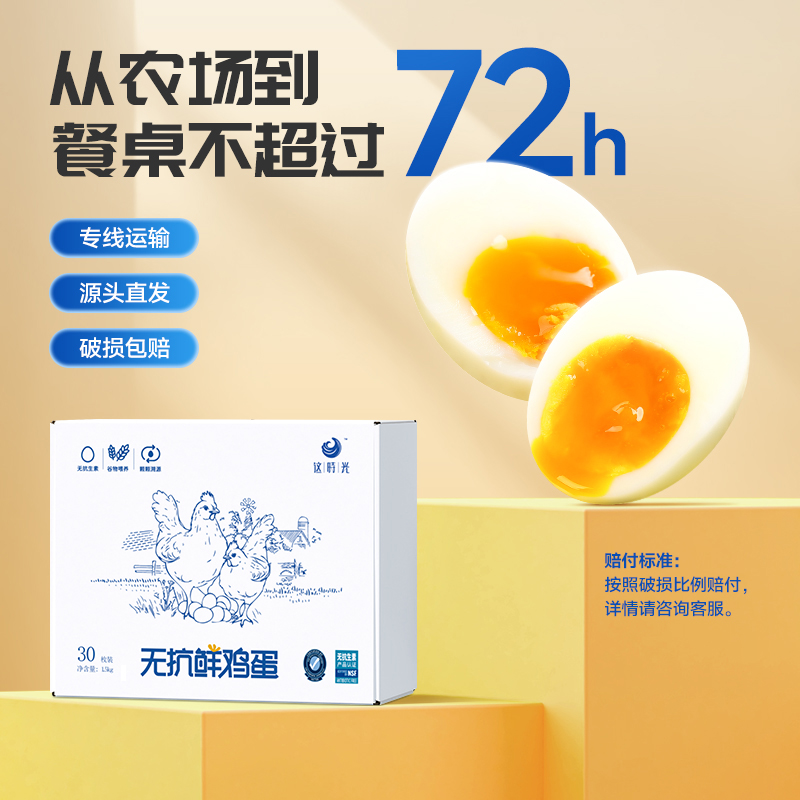 商品名称:这时光鸡蛋新鲜 无抗无激素无腥味鸡蛋无抗新鲜鸡蛋30枚礼盒整箱