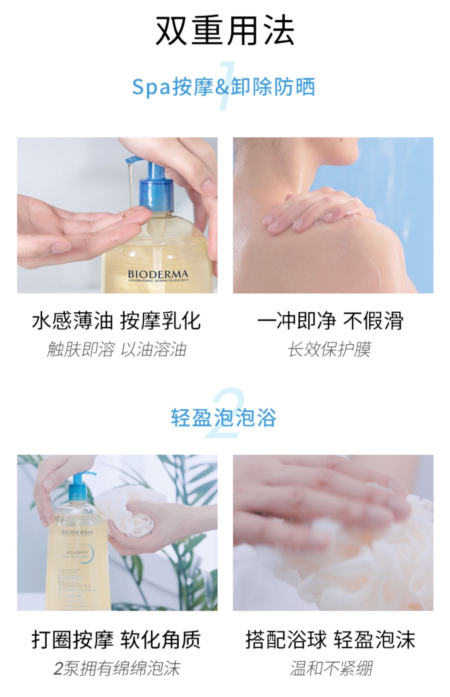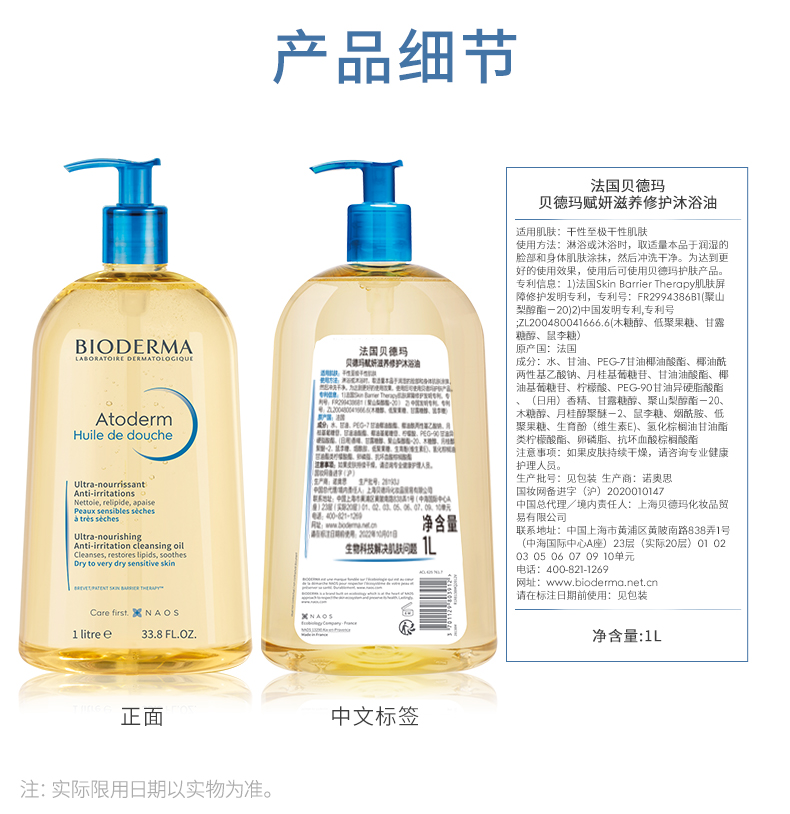 商品简介:贝德玛滋养修护沐浴油,超值1L装!改善鸡皮,长效保湿补水,清洁修复二合一,以油融油,卸除身体防晒,以油养肤,强化皮肤屏障,洗完水嫩测得到,让每一寸肌肤都水润弹嫩!【退货宝】