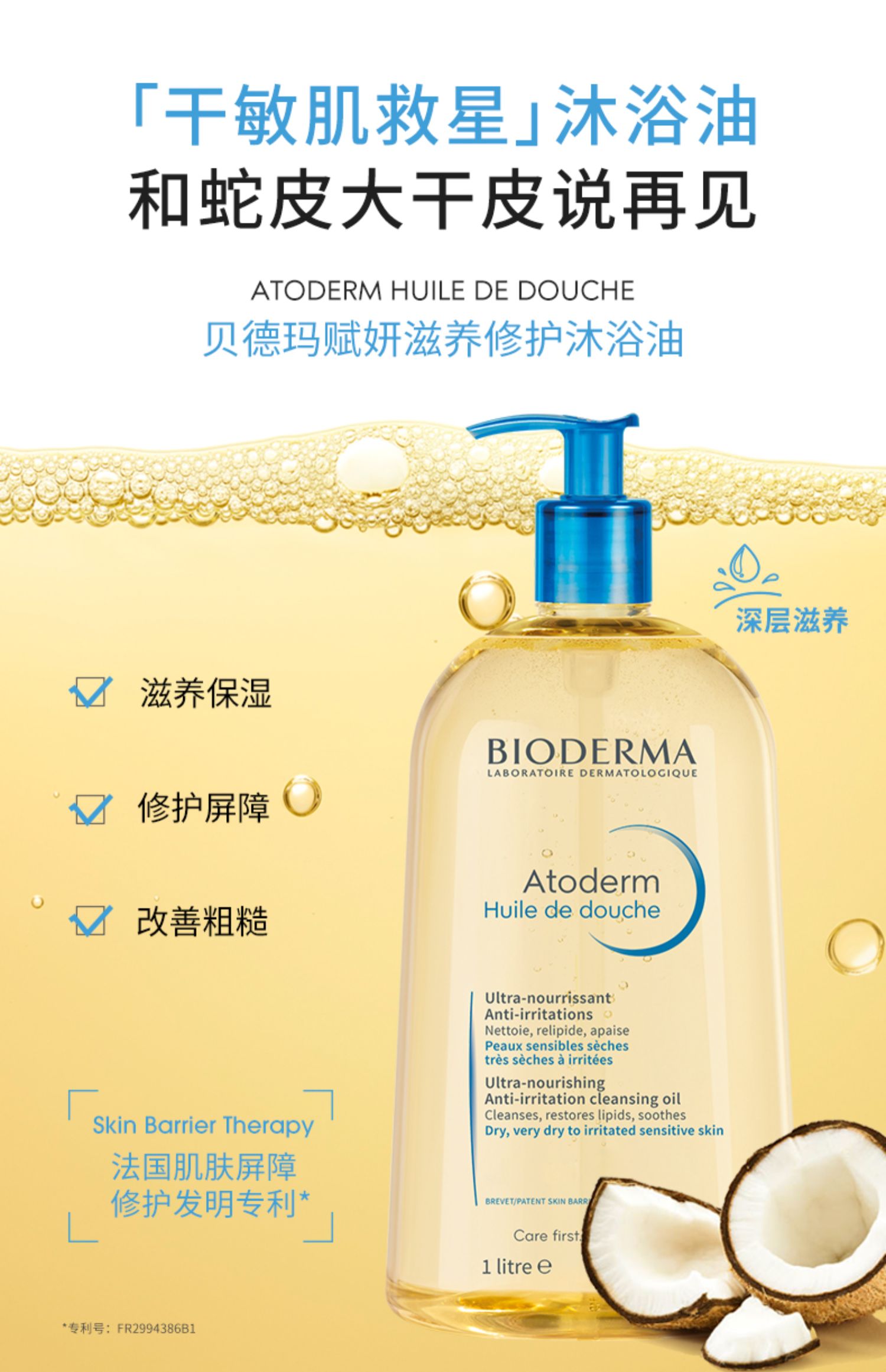 商品介绍:贝德玛官方旗舰店滋养修护沐浴油1L