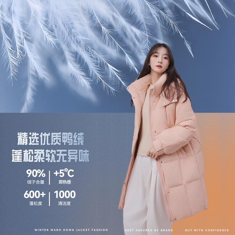 商品介绍:真维斯!过膝长款90绒羽绒服