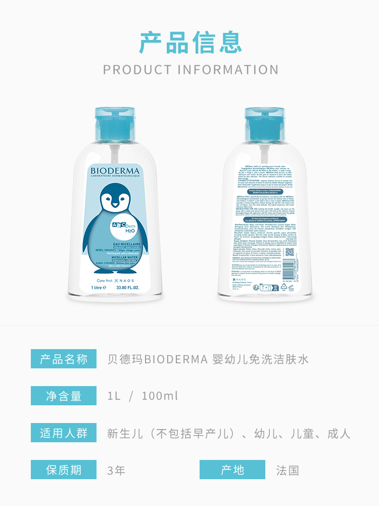 商品介绍:贝德玛母婴级洁肤水儿童卸妆爽肤水温和洁面