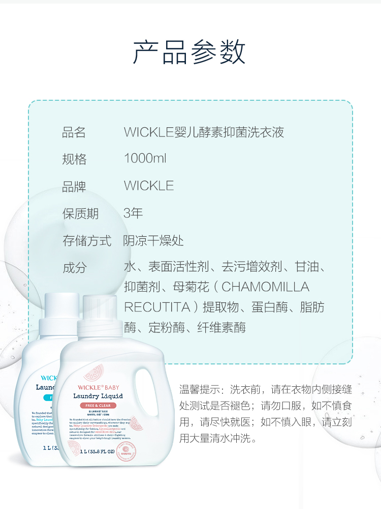 商品介绍:wickle宝宝洗衣液婴幼儿酵素洗衣液