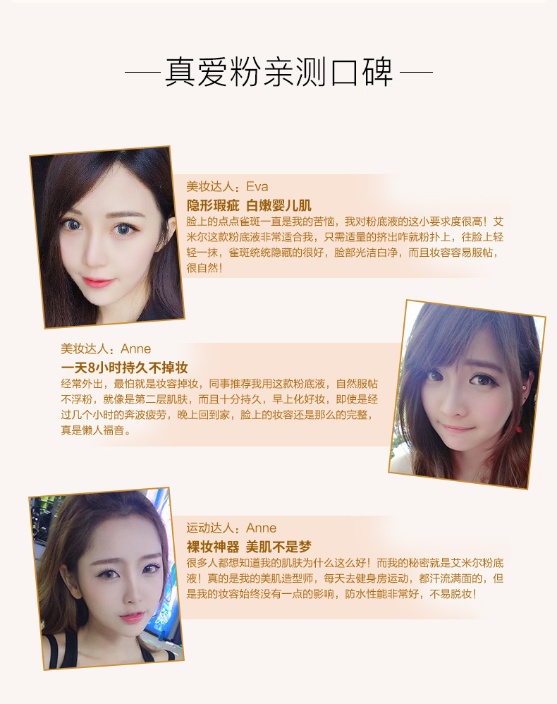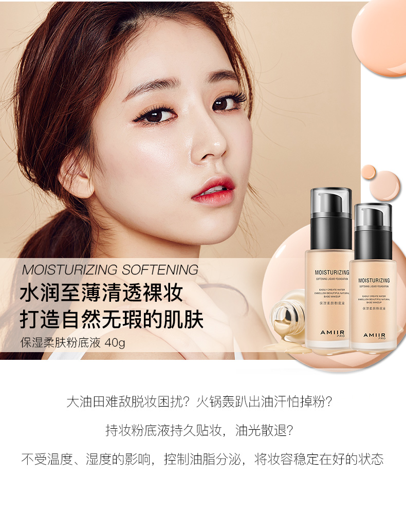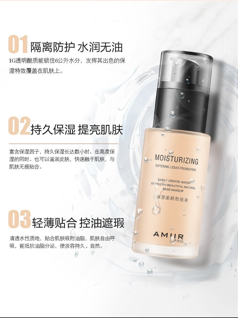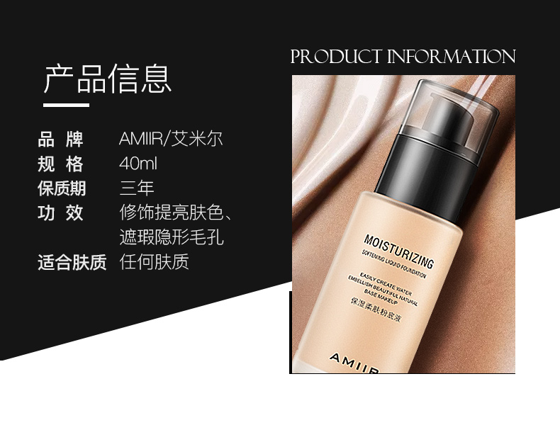 商品介绍:艾米尔粉底液女干皮混油皮遮瑕持久不脱妆