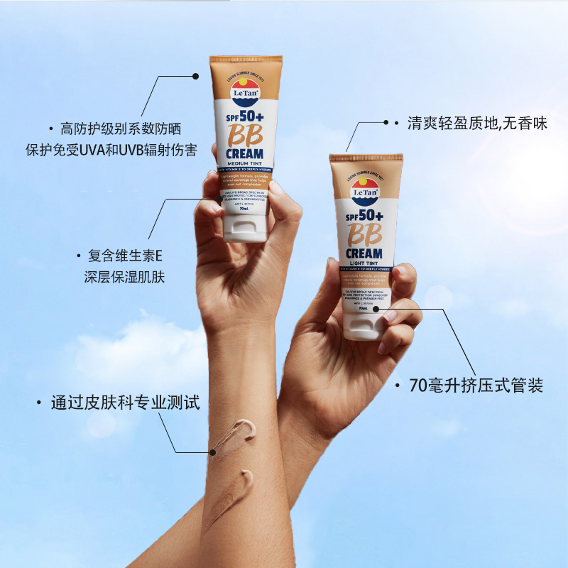 商品简介:【新客享4元首单到手70ml仅71】乐潭SPF50+防晒BB霜,有效抵挡紫外线,预防晒黑和晒斑。一抹提亮,均匀修饰肤色,自然不假白,清爽丝滑质感。质地轻薄水透,服帖底妆,多效合一!