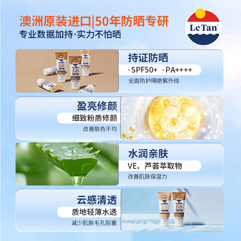 商品名称:LETAN乐潭面部遮瑕防晒修颜多效BB霜自然持久身体素颜霜保湿滋润