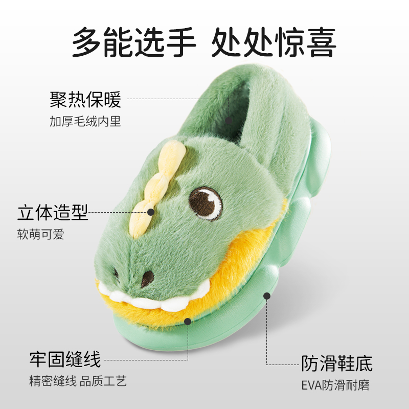 商品名称:欧孕儿童棉拖鞋男孩冬季可爱恐龙包跟毛毛鞋小孩宝宝家居鞋棉鞋