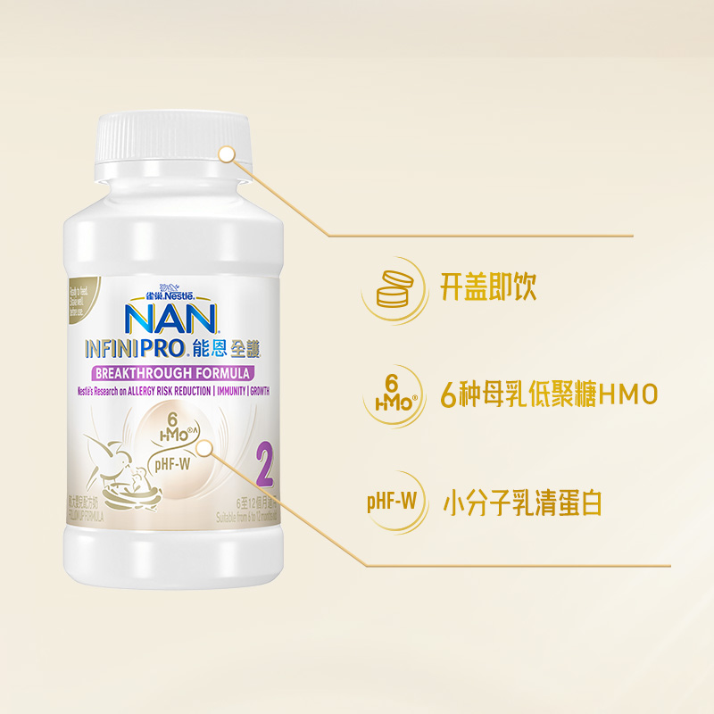 商品名称:【自营】雀巢能恩全护6HMO婴儿适度水解配方水奶2段8瓶*200ml/箱