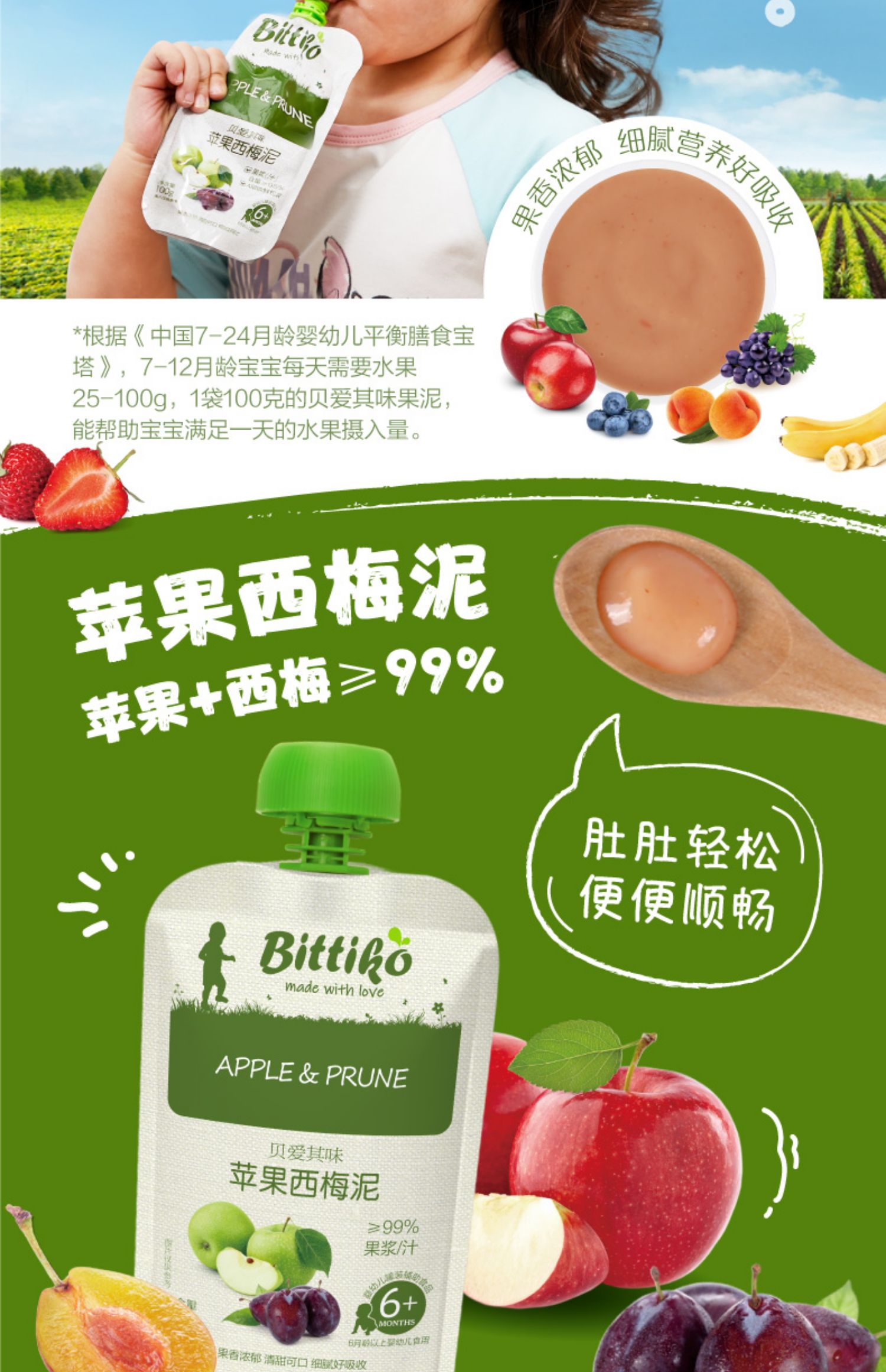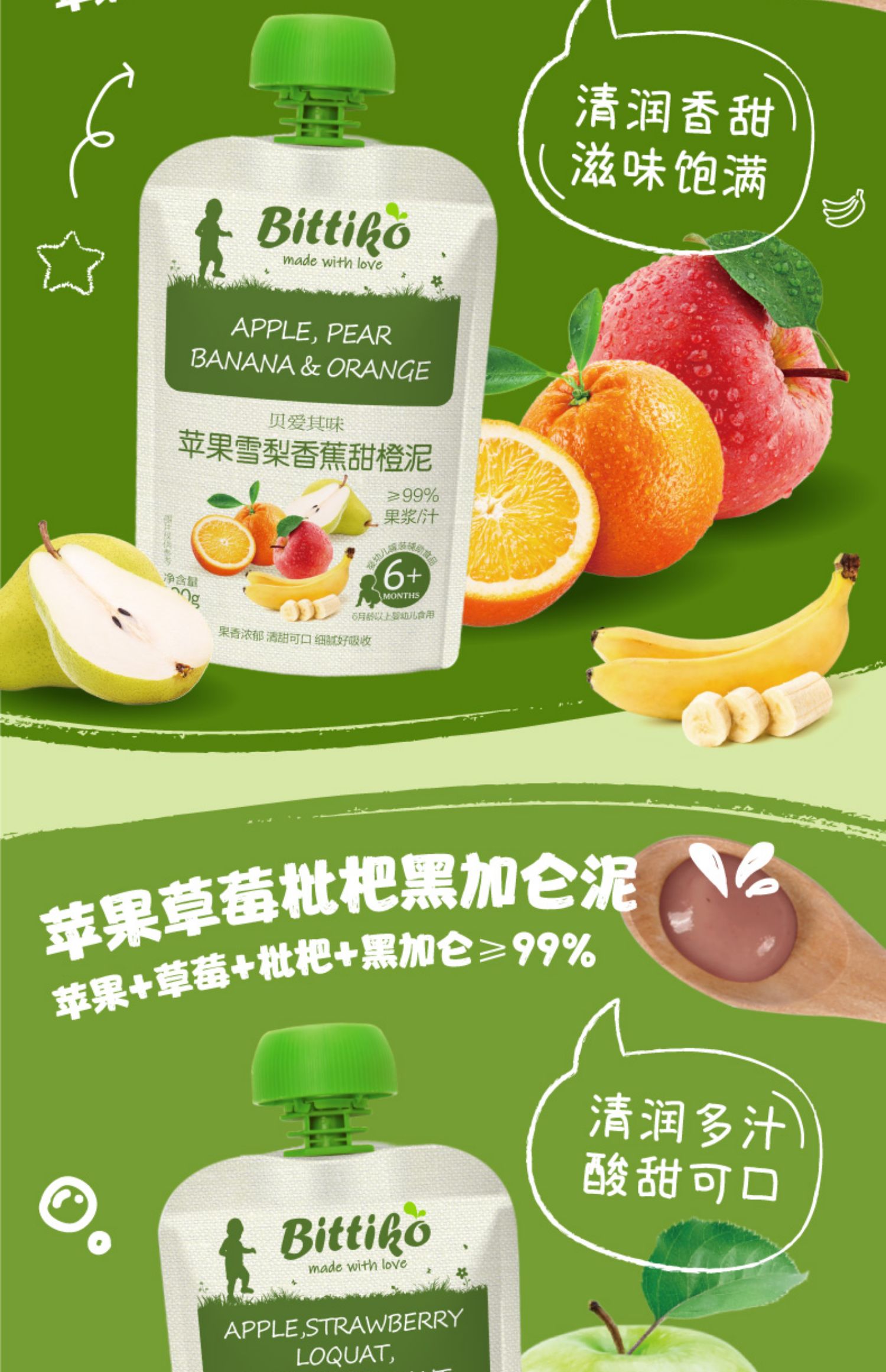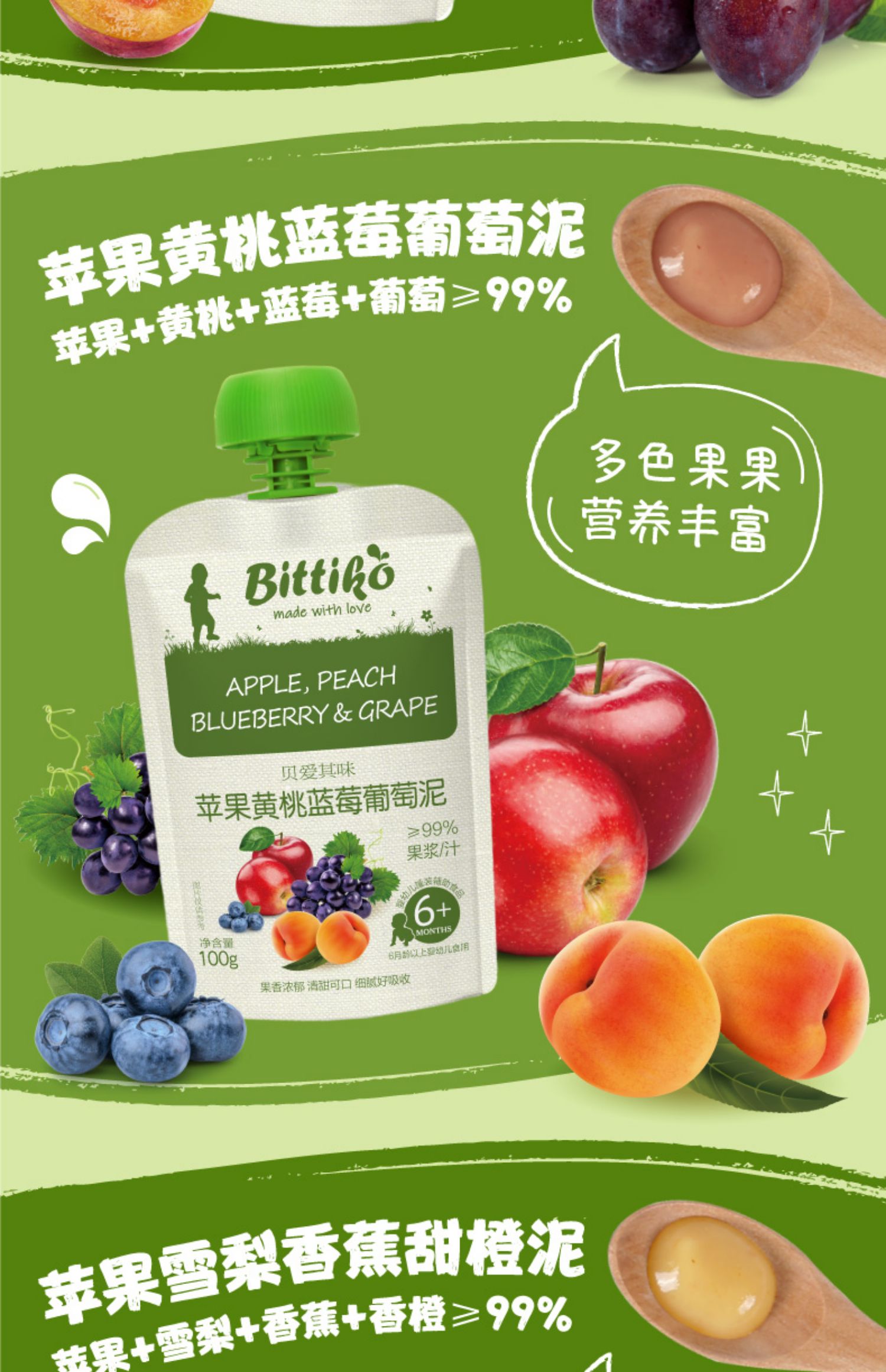 商品简介:首单到手更优惠!贝爱其味缤纷水果泥20袋!坚持0添加,四重锁鲜,长效保鲜!低温巴氏杀菌,品质保证,速抢!