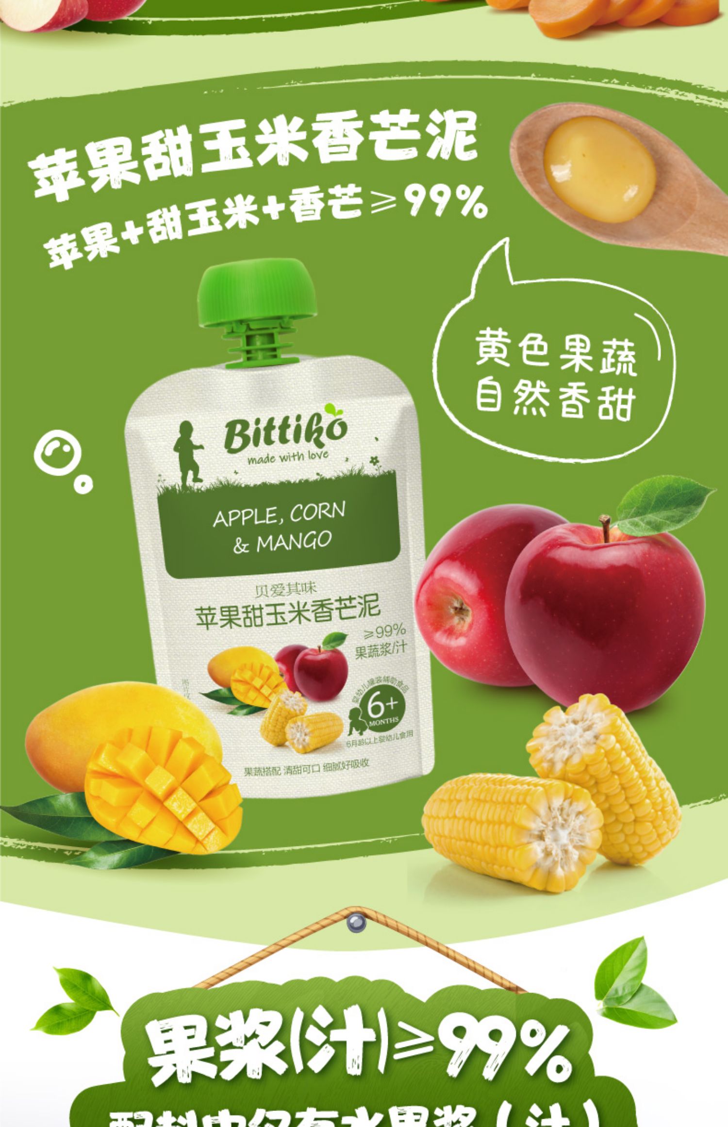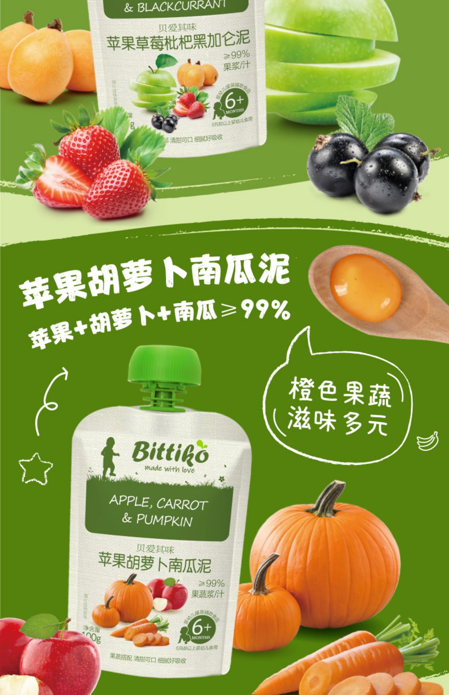 商品介绍:首单到手更优惠!贝爱其味缤纷水果泥20袋