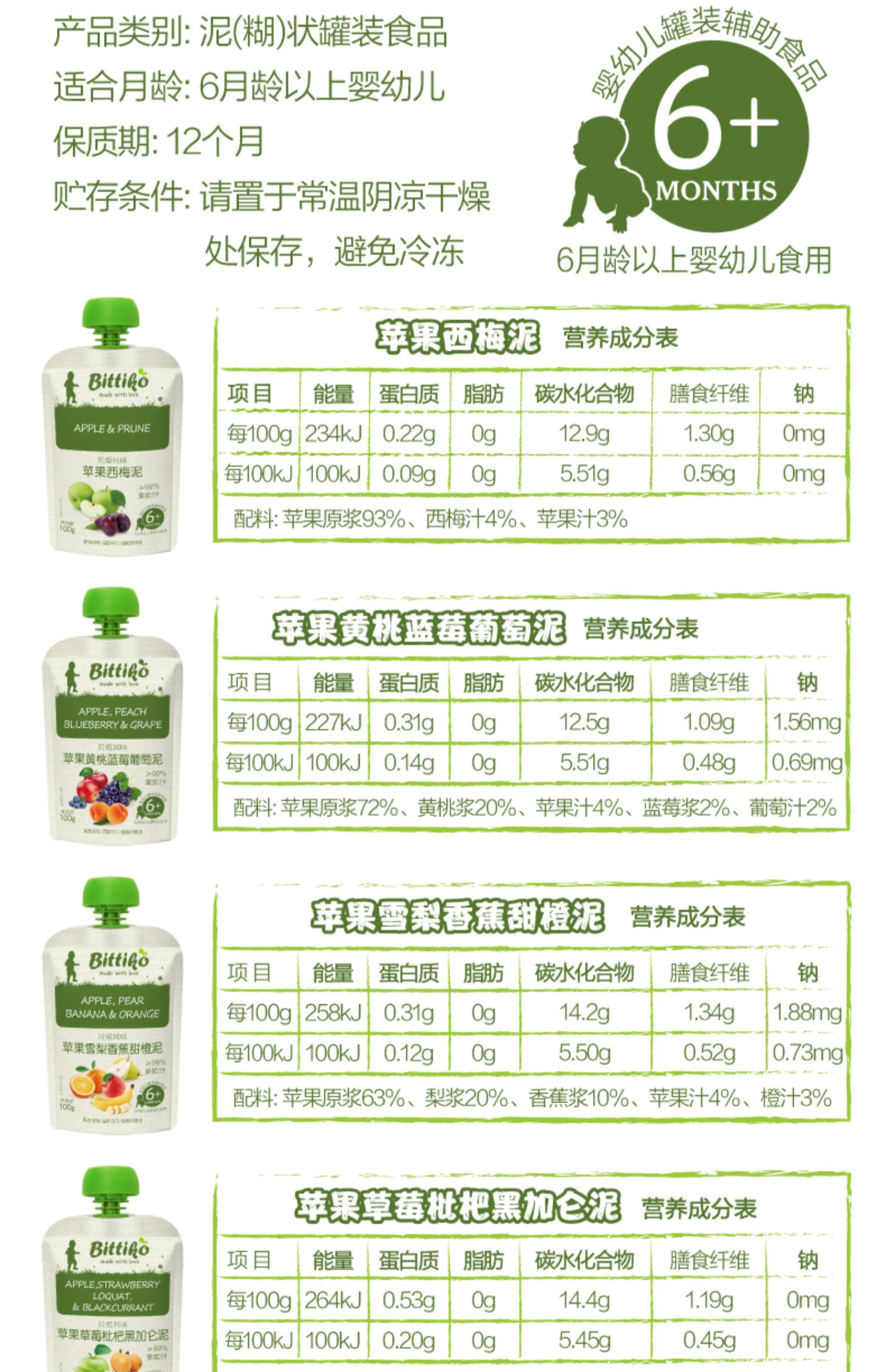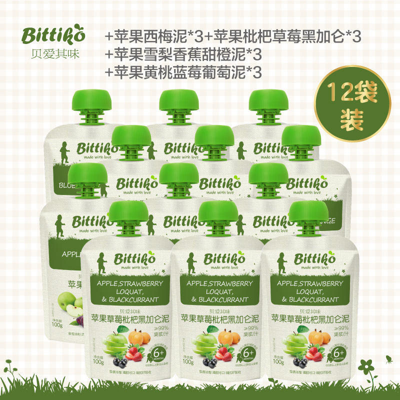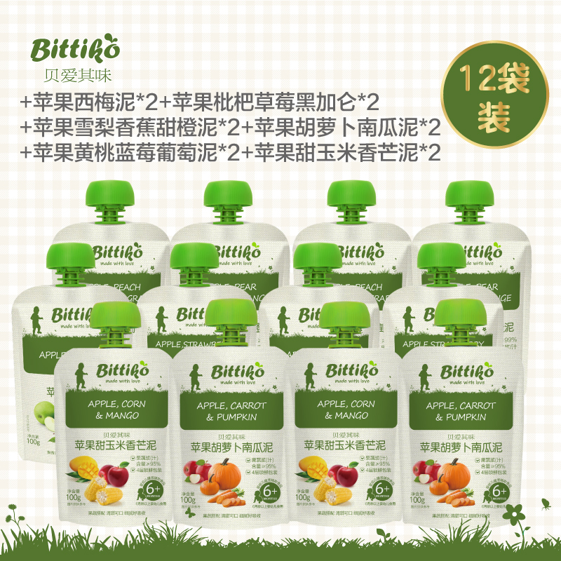 商品名称:贝爱其味果泥婴幼儿辅食混合泥果泥组合装100g*12袋6月+丽家宝贝