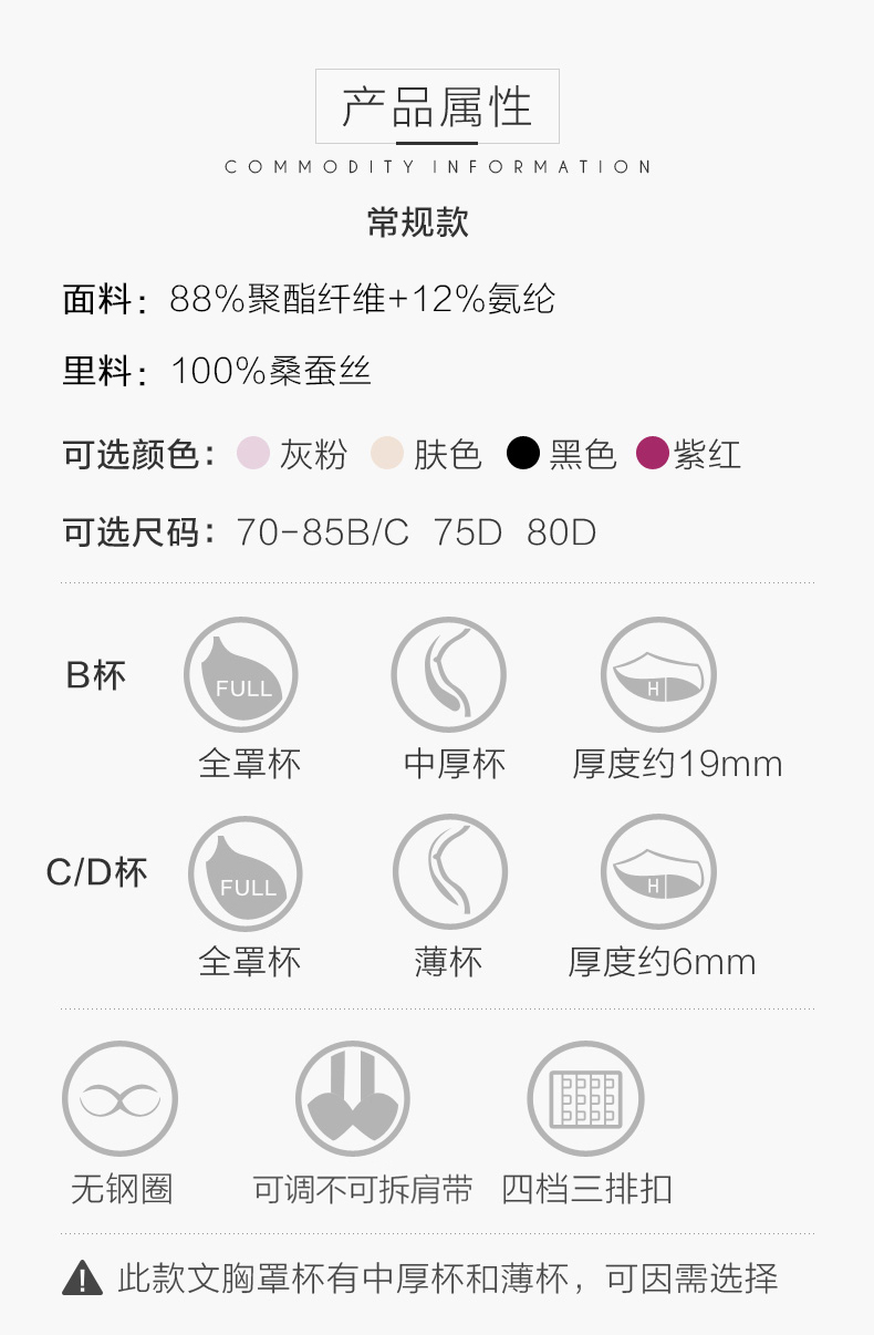 商品介绍:金三塔桑蚕丝无钢圈真丝文胸