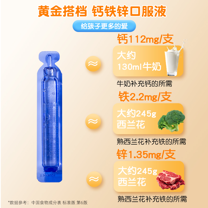 商品介绍:【96支礼盒装】黄金搭档钙铁锌口服液
