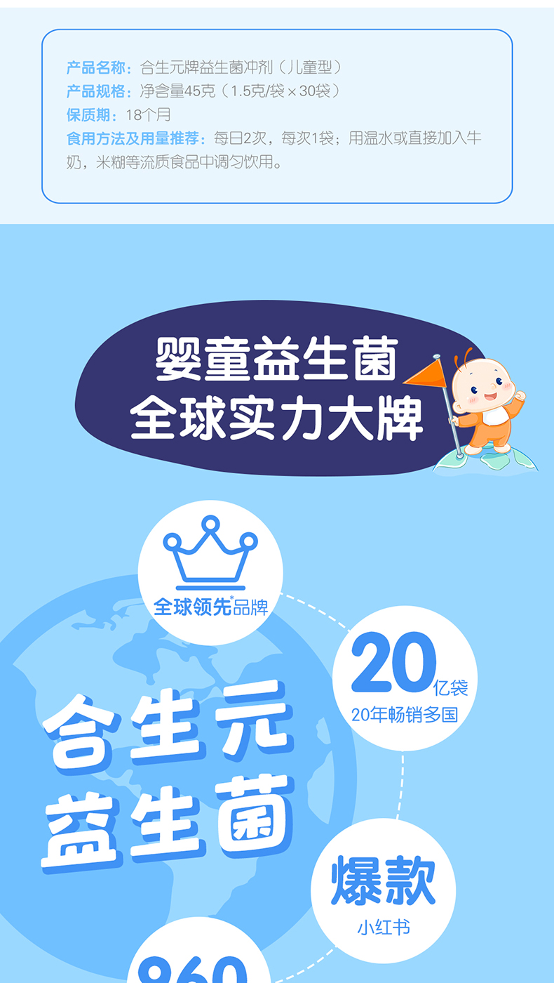 商品名称:合生元益生菌呵护肠胃特含婴儿双歧杆菌原味高活菌增强免疫力