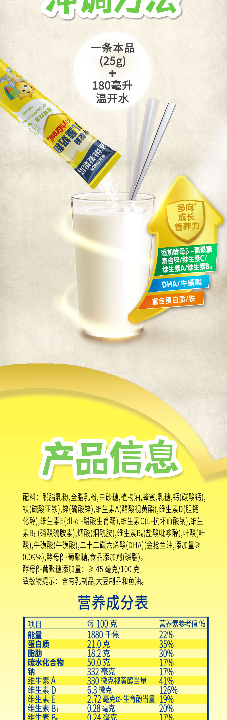 商品简介:【包邮!下单立减14.1元,券后58.9元】新老包装随机发,针对3-6岁儿童的生长发育特点而研制,富含维生素A/B/C,富含蛋白质/铁,全新配方,进口奶源,丰富营养,健康成长~DHA多重维生素早餐奶粉~2倍脑营养,智汇赢未来!